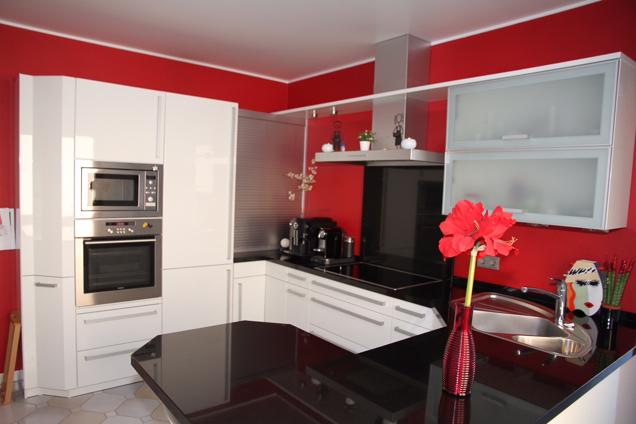 Living avec feu ouvert, cuisine équipée, salle à manger avec véranda avec marquises et volets électriques, grande terrasse et jardin, garage fermé, buanderie, chauffage au gaz récent (de 2008),